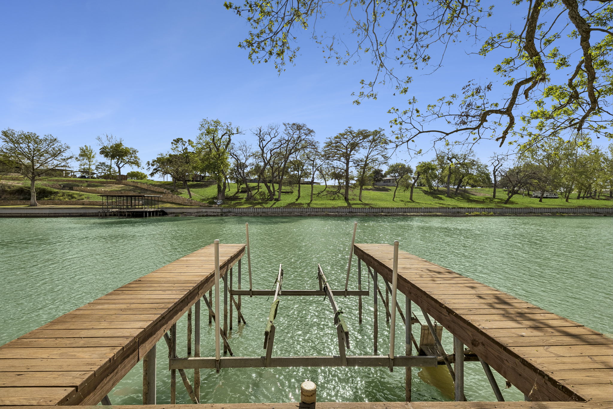 100 feet of Lake McQueeney waterfront. Big yard built for lake life. This is the kind of property buyers wait for—wide shoreline, easy access to the water, and outdoor space that actually gets used. With 100’ of waterfront and a private wood dock with boat lift, the setup is ready for boating, swimming, fishing, and weekends that revolve around the river. Lake McQueeney is filling back up now—setting the stage for a full season of boating, swimming, and time on the water. The backyard is the real standout. A spacious, gently sloping lawn stretches toward the water, shaded by mature trees and designed for gatherings, games, and relaxing afternoons outdoors. Expansive outdoor areas provide shade when the sun is high, while the open green space creates room for entertaining, family time, and making the most of life on the water. Storage and functionality are already in place. A metal carport offers protection for a boat or vehicle, and the detached storage shed and workshop provide space for tools, lake gear, and weekend projects. A sprinkler system helps keep the yard green and ready year-round. Inside, the home keeps things simple and comfortable with an open layout designed around the views. Large windows bring in natural light and frame the water, while vinyl plank flooring and neutral tones make everyday living easy. The kitchen and dining area flow directly into the living space, creating a practical setup for hosting friends or enjoying quiet evenings at home. The primary bedroom captures peaceful lake views and includes a walk-in closet and full bath, while additional bedrooms offer flexible space for guests, family, or weekend visitors. Wide shoreline. Usable yard. Dock in place. This is Lake McQueeney living built for time outside, time on the water, and the kind of weekends people move here for.